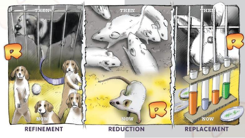 Uma representação do papel dos 3Rs na melhoria do paradigma da experimentação animal